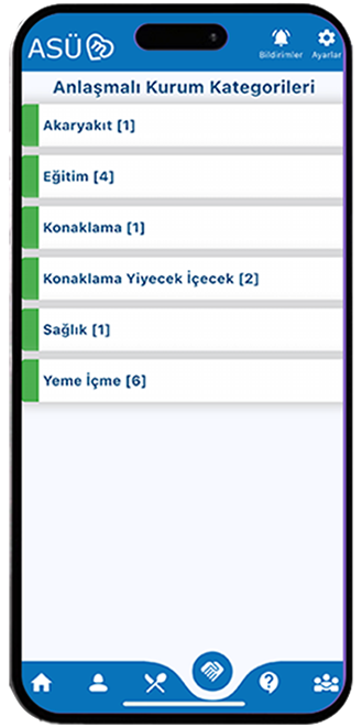 ASÜM, anlaşmalı kurumlar modülüyle üniversite ailesine özel fırsatlar sunuyor! Öğrenciler ve personeller, üniversitemizin indirim anlaşması yaptığı işletmeleri ve indirim oranlarını bu modülde kolayca görebilir
